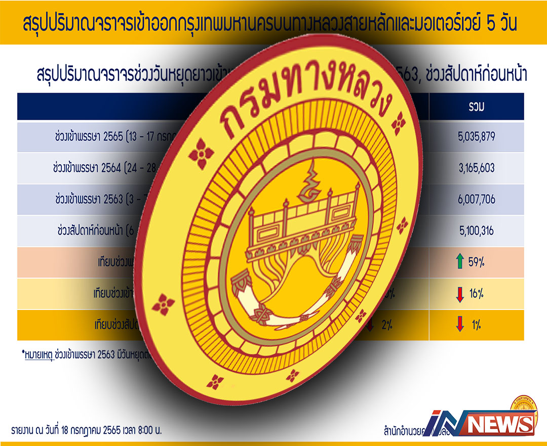 กรุงเทพฯ-กรมทางหลวง รายงานสภาพจราจรช่วงวันหยุดยาว ณ วันที่ 16 ก.ค. 2565 เวลา 08.00 น. กรมทางหลวง (ทล.) โดย สำนักอำน...