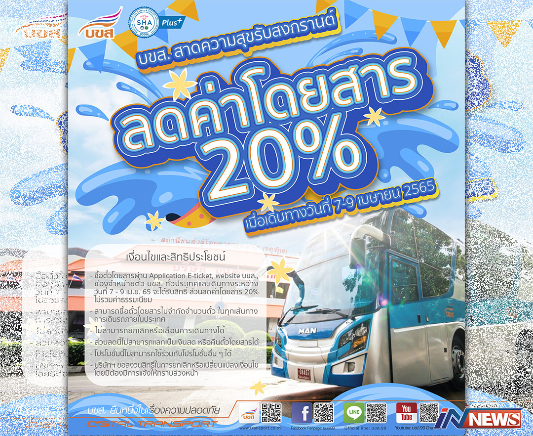 บขส.จัดโปรโมชันส่งความสุขรับสงกรานต์ ลดค่าโดยสาร20%ผู้ซื้อตั๋ว7-9เม.ย.นี้