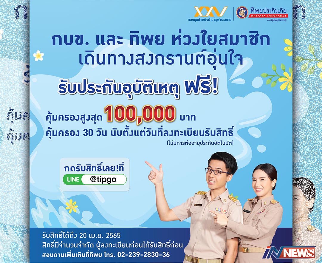 กบข.ร่วมทิพยประกันภัยช่วยช่วงสงกรานต์ ประกันอุบัติเหตุฟรี2หมื่นสิทธิ์คุ้ม30วัน