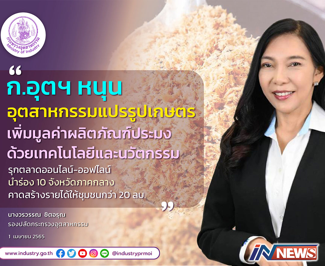 กรุงเทพฯ-ก.อุตฯ ลุยหนุนอุตสาหกรรมแปรรูปเกษตร เพิ่มมูลค่าผลิตภัณฑ์ประมง ด้วยเทคโนโลยีและนวัตกรรม รุกตลาดออนไลน์-ออฟไลน์ น...