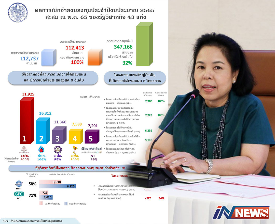 ภาพรวมเบิกจ่ายงบลงทุนของรัฐวิสาหกิจ สิ้นเดือนพฤษภาคม65เป็นไปตามเป้า