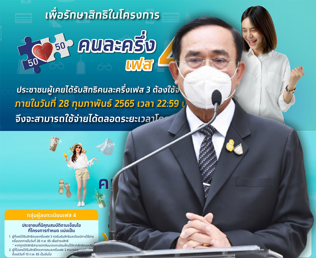นายกฯปลื้มคนละครึ่งเฟส4วันแรกคึกคัก เตือนร้านค้าห้ามแลกสิทธิเป็นเงินสด