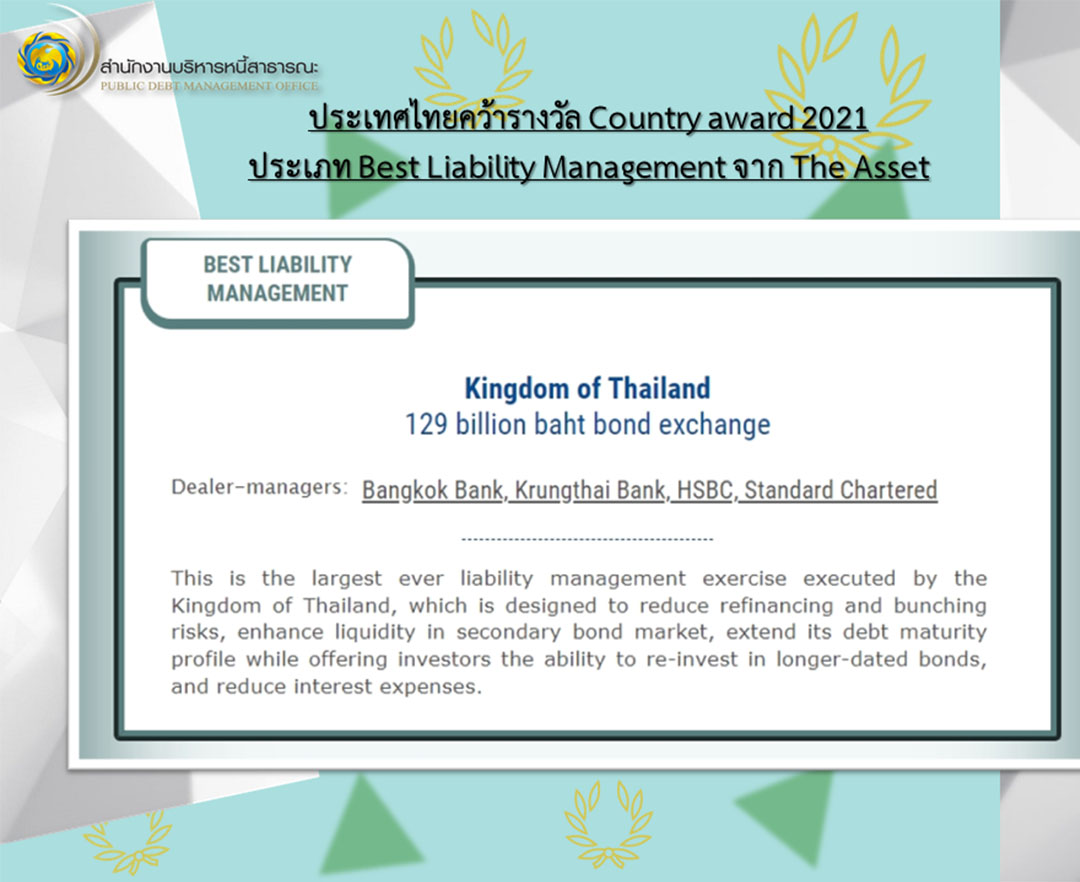 ไทยคว้ารางวัลCountry Award 2021 ประเภทBest Liability Management