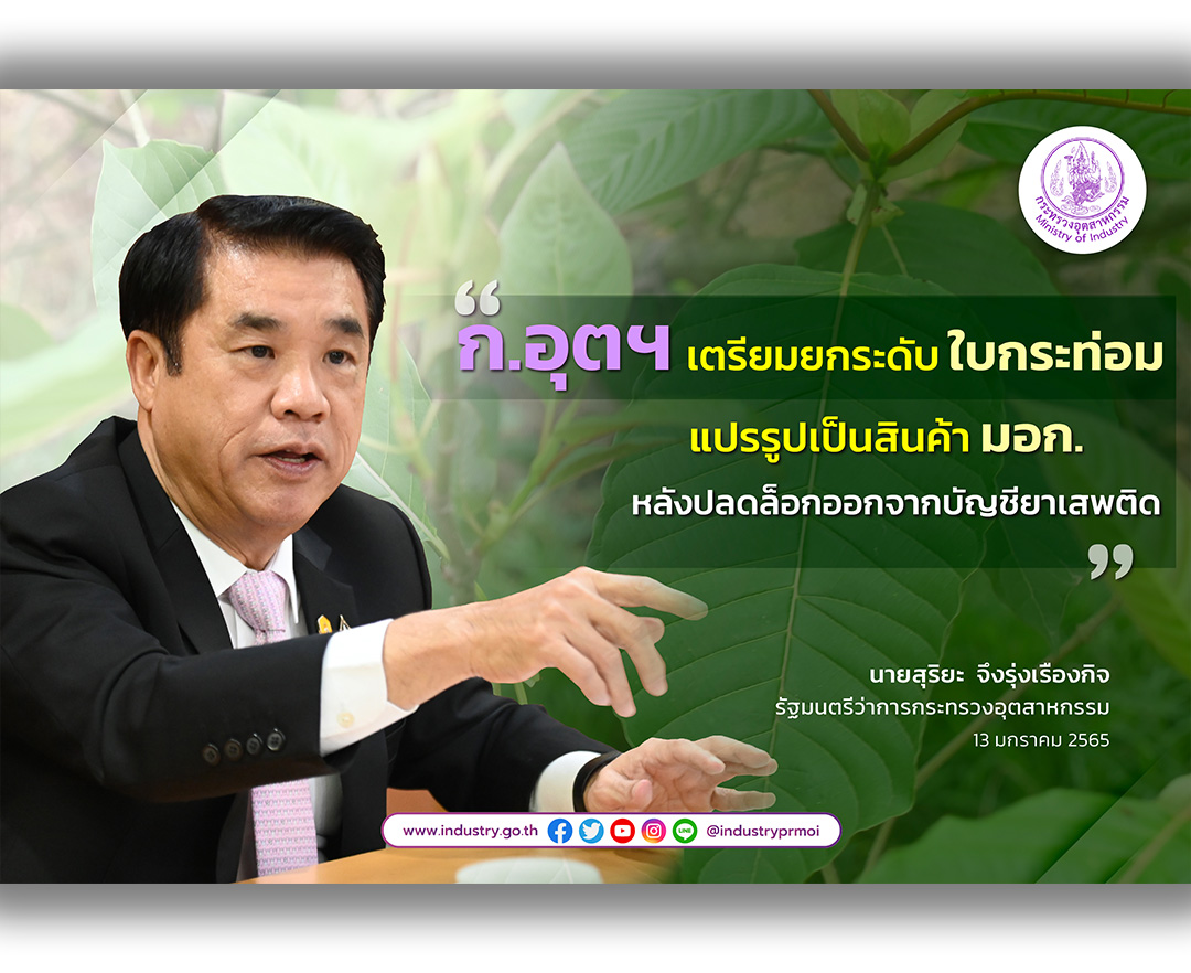 ก.อุตฯเตรียมยกระดับ'ใบกระท่อม'แปรรูป ขึ้นเป็นสินค้ามอก.หลังปลดล็อก