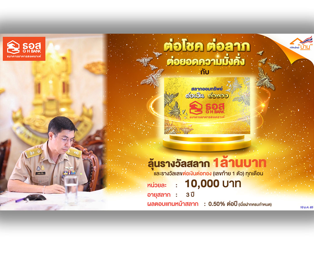 ครั้งแรก!ธอส.ขายสลาก'ต่อเงินต่อทอง' ลุ้นรางวัลสลากมูลค่าสูงสุด1ล้านบาท