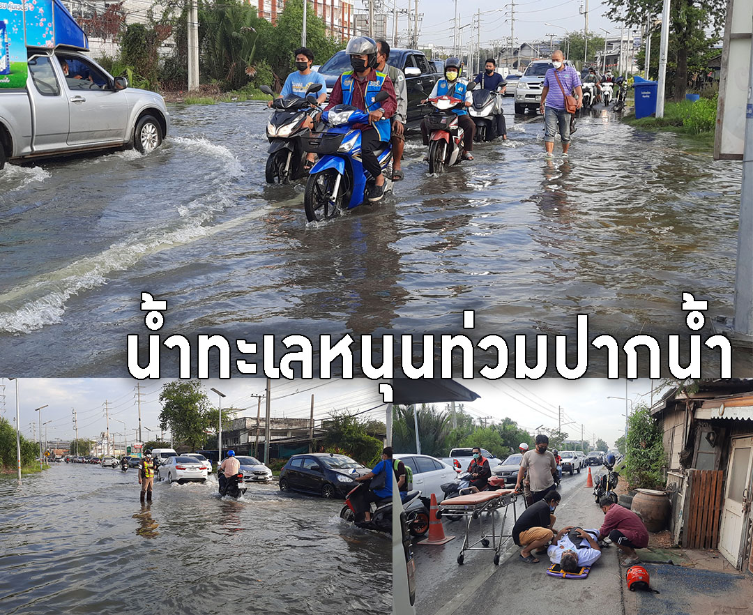 สมุทรปราการ-มาแล้วน้ำแรกของปีไหลท่วมพื้นที่สมุทรปราการหนุ่มโรงงานอะไหล่ควบจักรยานยนต์ฝ่าสายน้ำพลิกคว่ำบาดเจ็บ