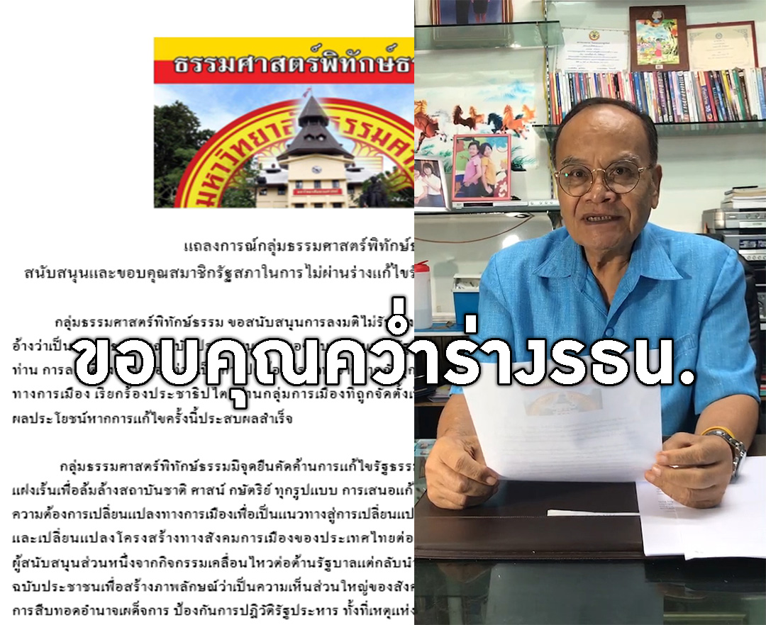 ธรรมศาสตร์พิทักษ์ธรรมเลยแถลงการณ์ ขอบคุณสมาชิกสภาคว่ำร่างแก้ไข รธน.