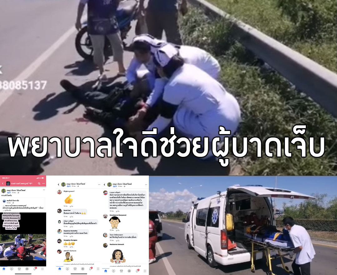 ชื่นชม!!พยาบาลไปธุระเจอหนุ่มมอไซต์ล้ม รีบหยุดจอดช่วยพบนิ้วขาดเลือดท่วม