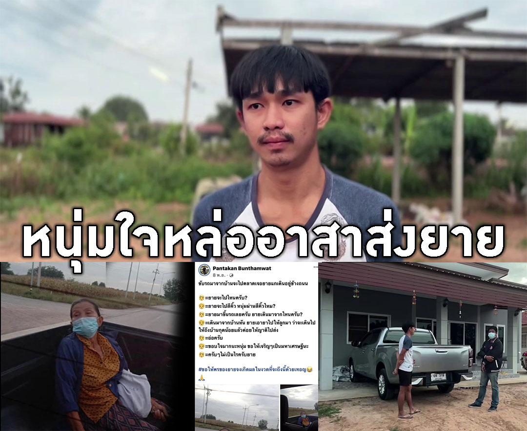 โชเชียลชื่นชมหนุ่มใจหล่อพายายให้ลูก สงสารยายเดินข้างทางเลยอาสาไปส่ง