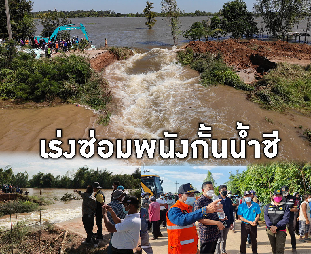 กาฬสินธุ์รุกนำเครื่องจักรซ่อมคันกั้นน้ำชี หลังขาดทะลักท่วมนาข้าวกว่า3พันไร่