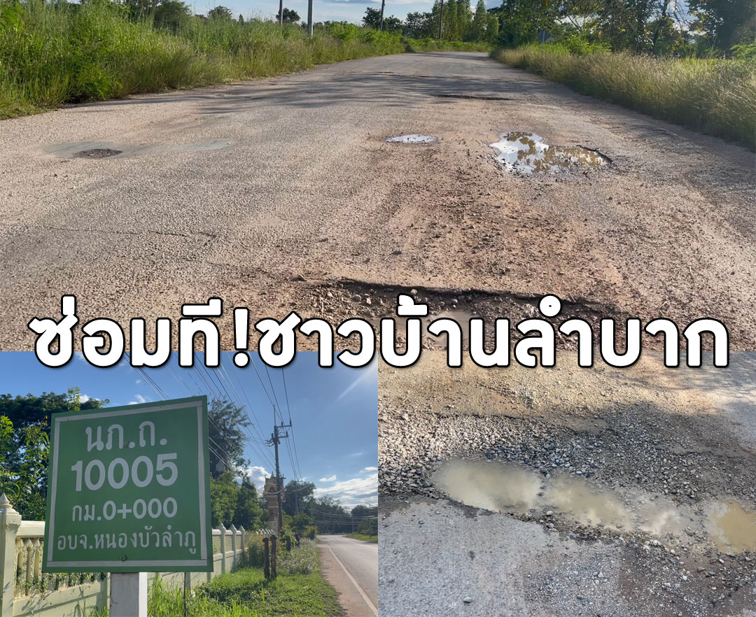 เดือดร้อนกันมานานถนนพังไม่มีใครซ่อม ช่วยทีที่หน้าวัดป่าศรีสว่างถึงบ้านพร้าว