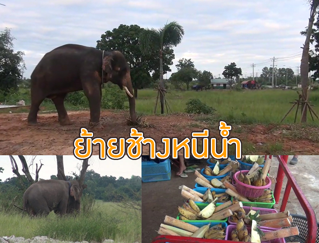ทุกข์!น้ำชีทะลักท่วมหมู่บ้านค่ายชัยภูมิ ควาญช้างต้องรีบย้ายช้างหนีน้ำอลหม่าน
