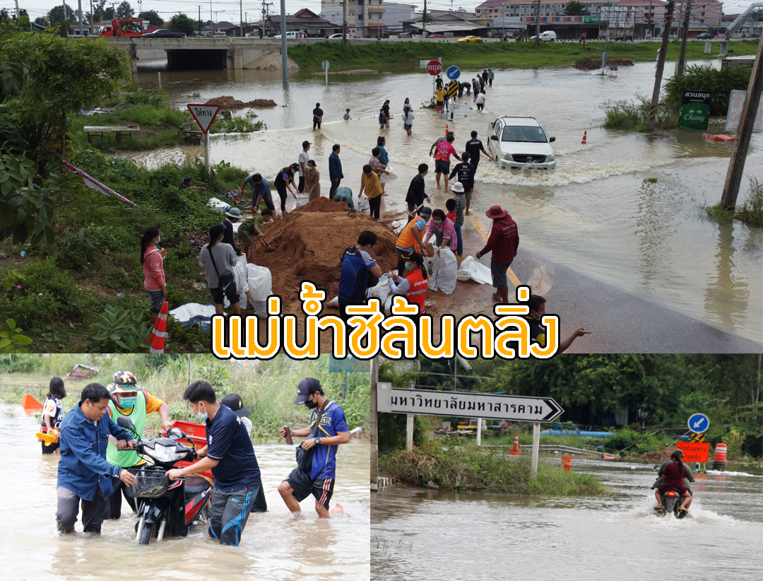มหาสารคาม - แม่น้ำชีล้นตลิ่ง ระดับน้ำสูงขึ้นอย่างต่อเนื่อง พนังกั้นน้ำถูกกัดเซาะ ทำให้มวลน้ำไหลเข้าท่วมอุโมงค์ทางลอดใต้ส...