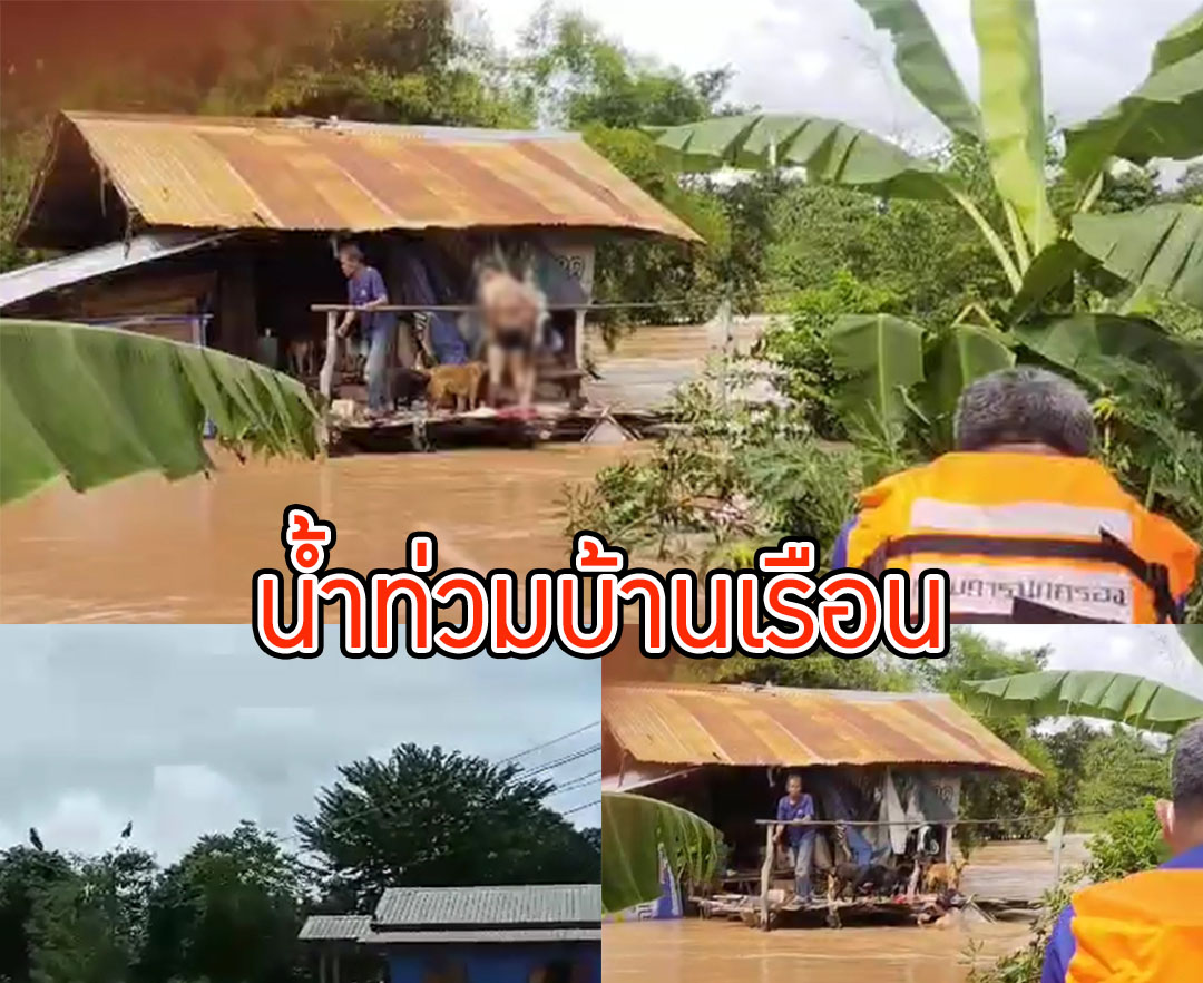 บ้านหมี่ท่วมสูงชาวบ้านรีบอพยพคนชราและ ผู้ป่วยติดเตียงหนีน้ำด่วน