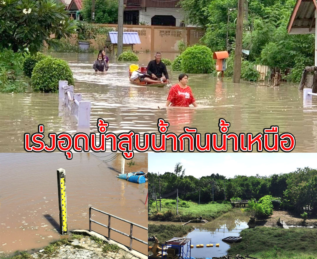 เร่งอุดน้ำสูบน้ำป้องกันน้ำเหนือล้นเข้าหมู่บ้าน