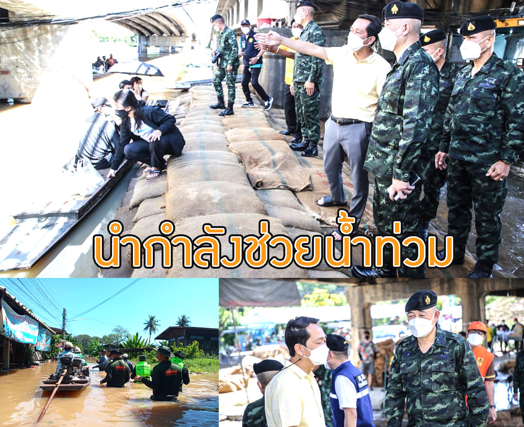 ผบ.พล.ป.ลพบุรีนำกำลังทหารช่วยผู้ประสบอุทกภัยในจ.สิงห์บุรี
