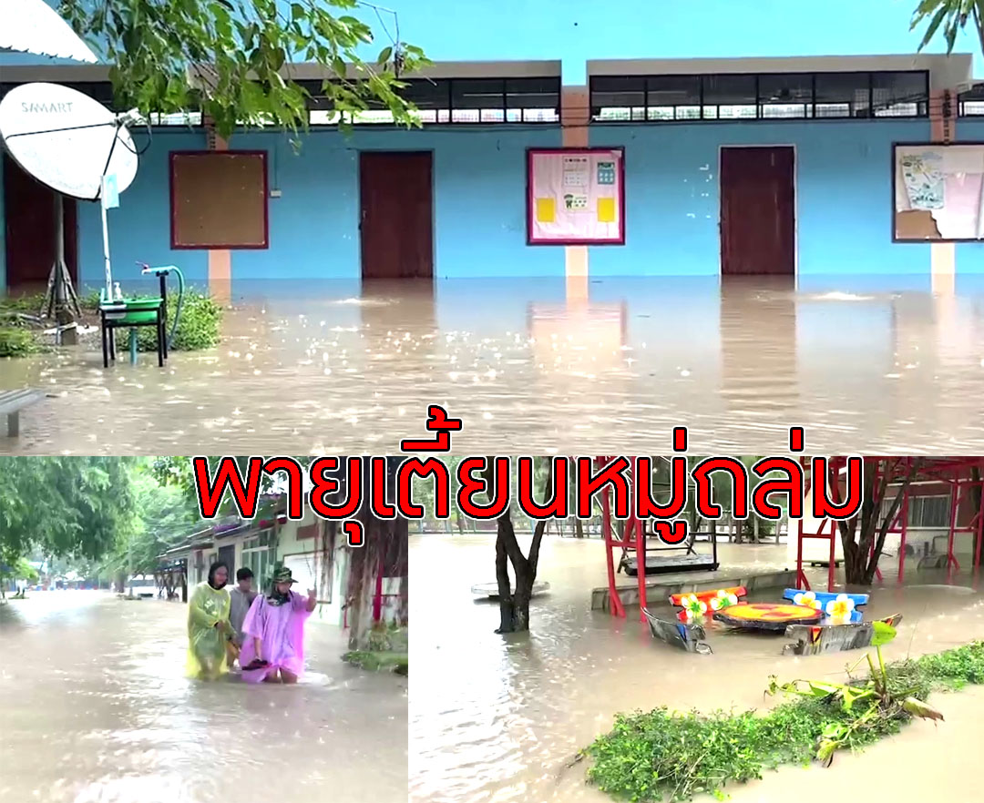 อ่วม!'พายุเตี้ยนหมู่'พ่นพิษหนองบัวระเหว ท่วมถนนเข้าออกหมู่บ้านพังเสียหาย