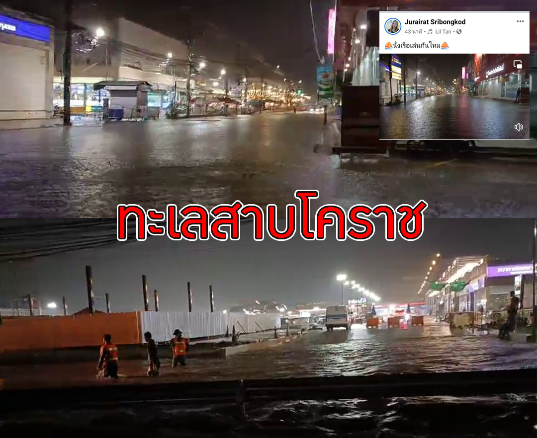 โคราช - กลายเป็นทะเลสาบหลังฝนตกต่อเนื่อง 1 ชั่วโมงเต็ม ถนนมิตรภาพกลายเป็นอัมพาตรถเล็กไม่สามารถสัญจรผ่านได้