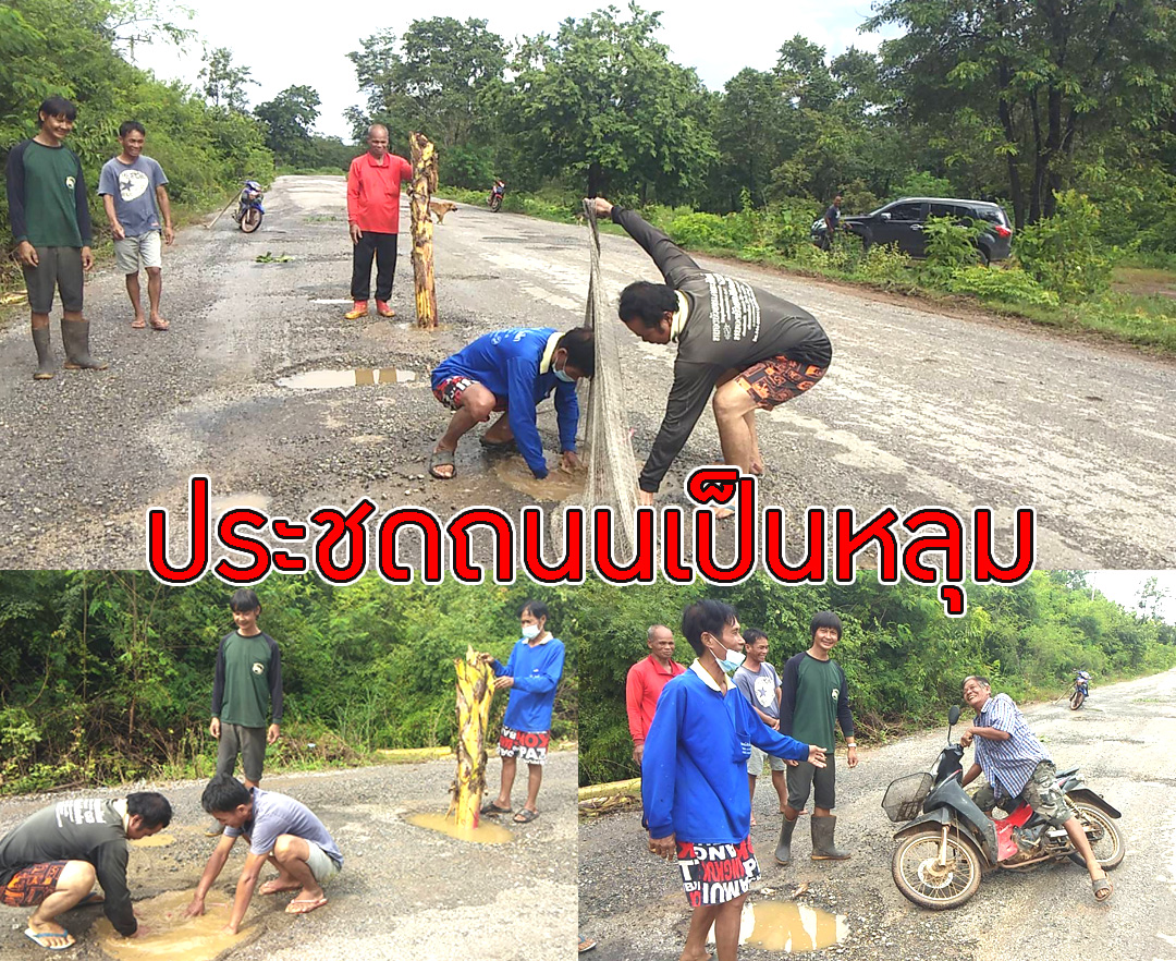 ชัยภูมิชาวบ้านทอดแหและปลูกต้นกล้วยประชดถนนเป็นหลุมกว่า5กม.
