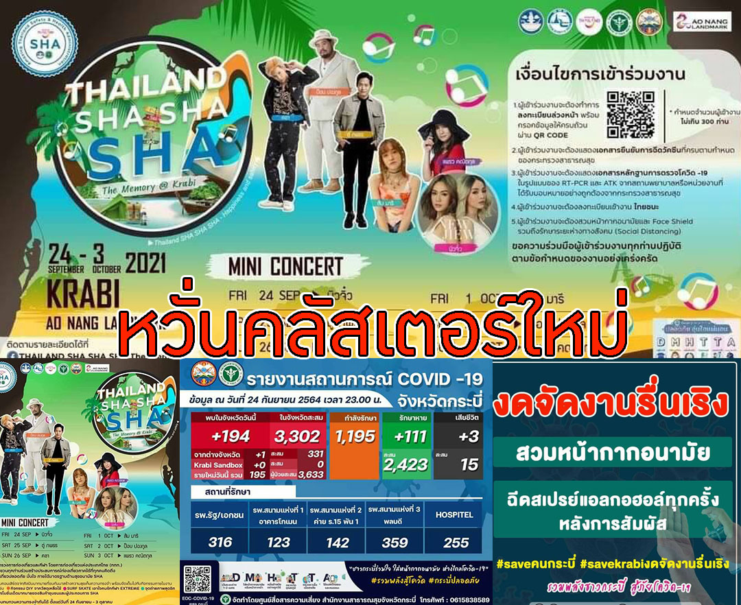กระบี่ - ชาวโซเชี่ยลจวกเละเรียกร้องให้หน่วยงานเกี่ยวข้อง ยุติการจัดงาน คอนเสิร์ต Thailand SHA SHA SHA : The Memory...
