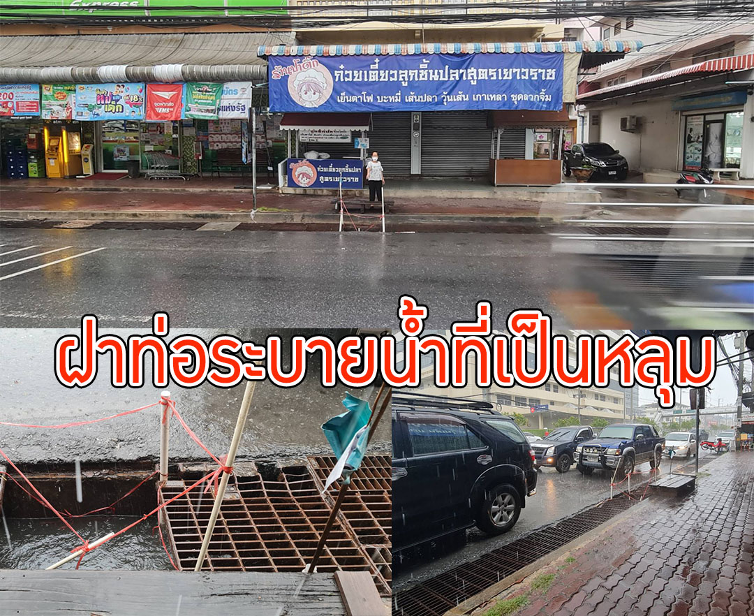ชาวบ้านแพ้ววอนหน่วยงานรัฐเร่งแก้ด่วน ฝาท่อระบายน้ำหน้ารพ.บ้านแพ้วชำรุด
