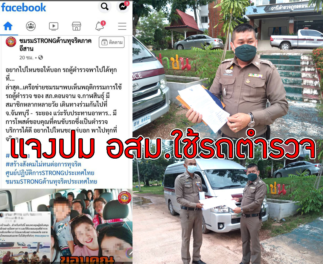 กาฬสินธุ์ - ผกก.สภ. ดอนจาน ชี้แจงกรณี“ชมรม STRONG ต้านทุจริตภาคอีสาน” โพสต์ภาพและข้อความการใช้รถตำรวจ ระบุ อ...