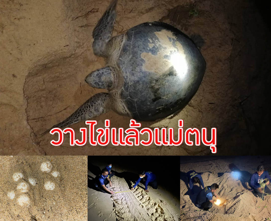 พังงา – มาแล้ว แม่ตนุขึ้นวางไข่ขายหาดบ้านบ่อดาน เจ้าหน้าที่รีบเคลื่อนย้ายไปที่ปลอดภัย เนื่องจากน้ำทะเลท่วมถึงรั...