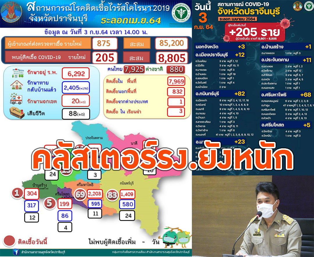 คลัสเตอร์รง.ทำโควิดปราจีนฯพุ่ง205คน เฝ้าจับตา13คลัสเตอร์รง.เชื่อมโยงกัน