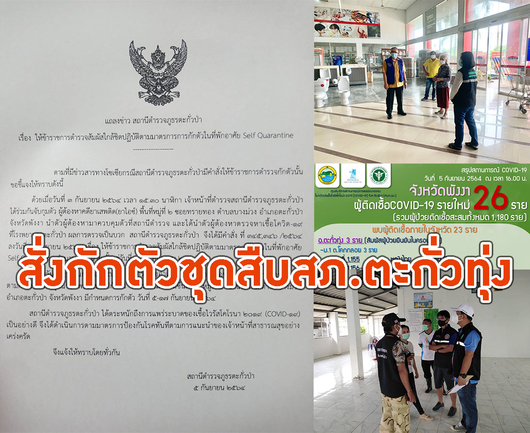 พังงา-ด่วน ผกก สภ.ตะกั่วป่า ออกหนังสือสั่งกักตัวเจ้าหน้าที่ชุดสืบสวน 15 นายที่จับกุมผู้ต้องหายาเสพติดและป่วยเป็นโควิด19ต...