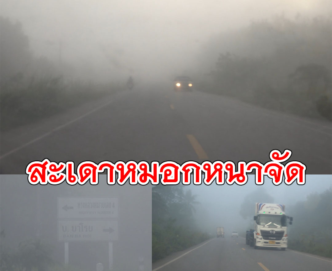 สงขลา-พื้นที่ อ.สะเดา เช้านี้หมอกลงหนาจัดผู้ใช้รถใช้ถนนต้องใช้ความระมัดระวังในกาสรขับขี่