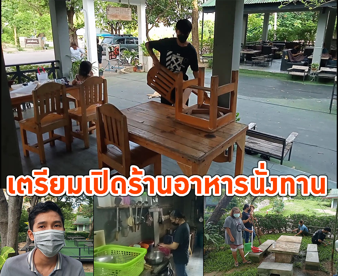 ร้านอาหารราชบุรีเตรียมร้านเปิดนั่งทาน หลังรัฐปลดล๊อคให้ร้านตั้งโต๊ะกินได้