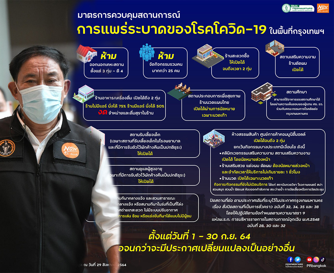 กรุงเทพฯ-คณะกรรมการควบคุมโรคติดต่อกรุงเทพมหานคร มีมติเห็นชอบปรับมาตรการตามข้อกำหนดเพื่อให้กิจการ/กิจกรรม สามารถเปิดดำเนิ...