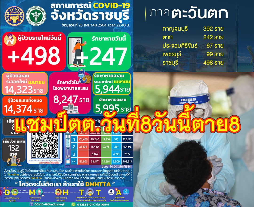 ราชบุรี - ติดเชื้อลดลง 498 ราย แต่เสียเพิ่ม 8 ราย ขณะติดที่ 1 ตะวันตกเป็นวันที่ 8