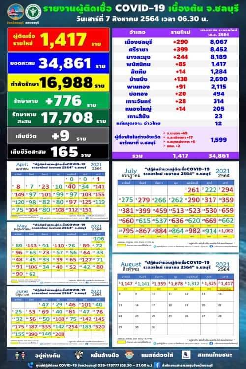 ชลบุรี-สถานการณ์การระบาดของเชื้อไวรัสโควิด-1- วันนี้ชลบุรีอาการยังหนัก มีรายงานผู้ติดเชื้อโควิด-19 รายใหม่ จำนวน 1,417 ร...