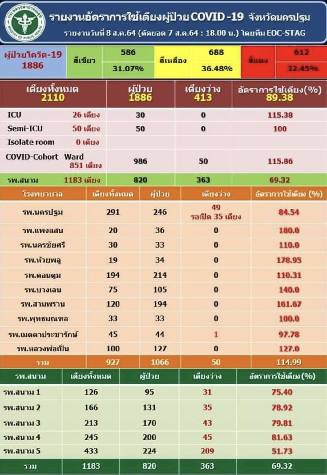 นครปฐม-คลัสเตอร์ 2 อำเภอ ดอนตูม บางเลน 248รายตรวจพบผู้ป่วยรายใหม่ 557 รายเสียชีวิต 5 รายผู้ป่วยสะสม 17,734 ราย