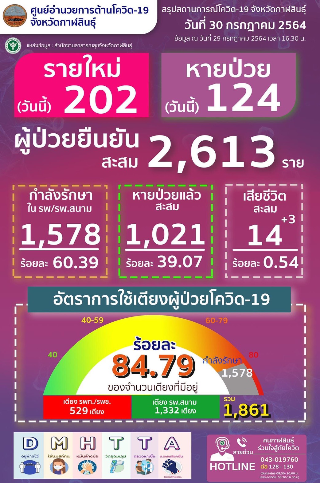 กาฬสินธุ์-สถานการณ์โรคโควิด-19ในพื้นที่จังหวัดกาฬสินธุ์ ล่าสุดมีผู้เสียชีวิตเพิ่มอีก 3 ราย และพบผู้ป่วยรายใหม่ 202 ราย ส...
