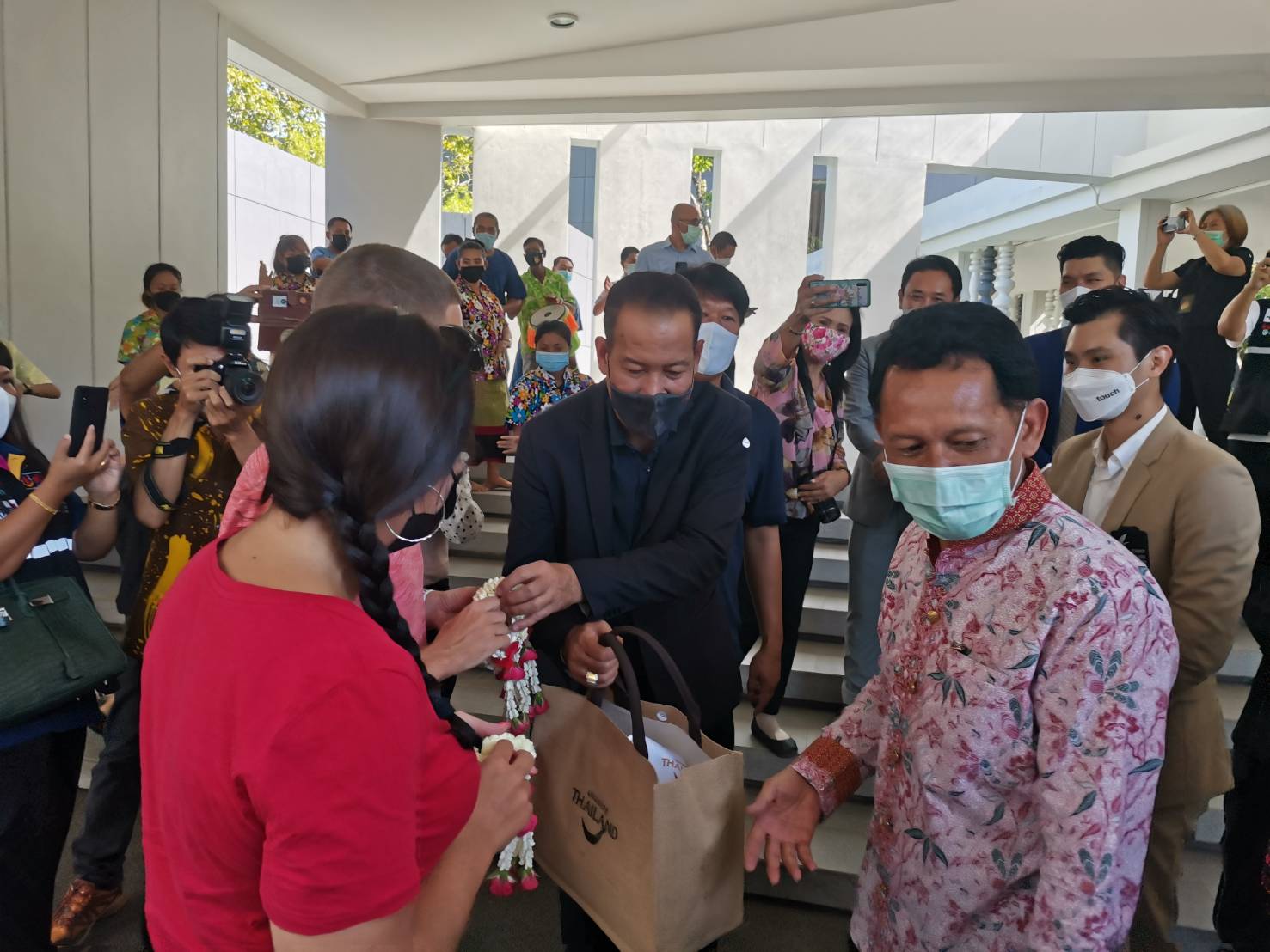 พังงา-ผู้ว่าพังงานำทีมแห่ต้อนรับนักท่องเที่ยวต่างชาติคู่แรกจากโครงการภูเก็ตแซนด์บ็อกซ์ เข้ามาพักและท่องเที่ยวที่เขาหลัก&...