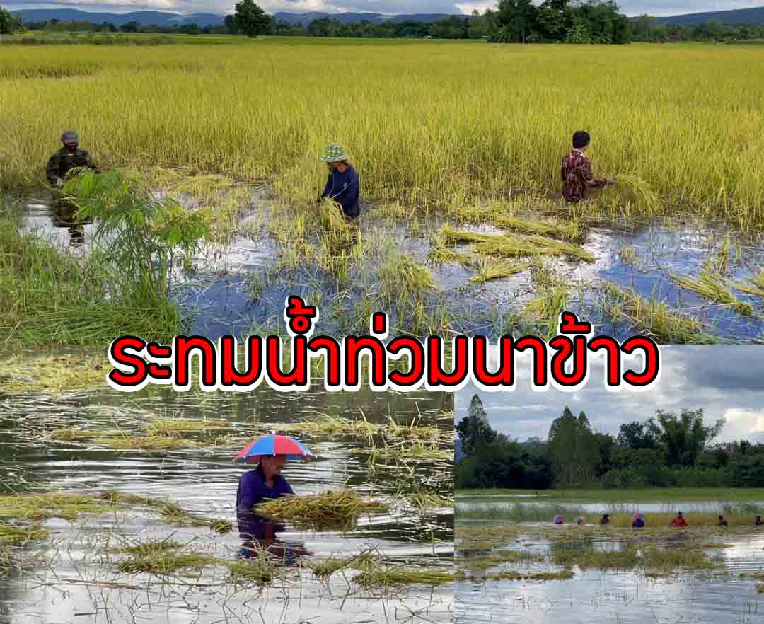 ชาวนาระทมน้ำเอ่อเข้าท่วมนาข้าวเสียหายขณะที่ข้าวออกรวงใกล้จะเก็บเกี่ยว