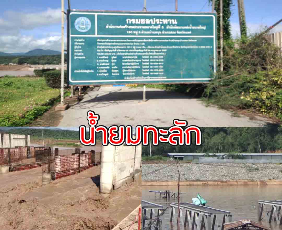 น้ำยมทะลักเข้าพื้นที่ก่อสร้างรถแบคโฮจมน้ำ