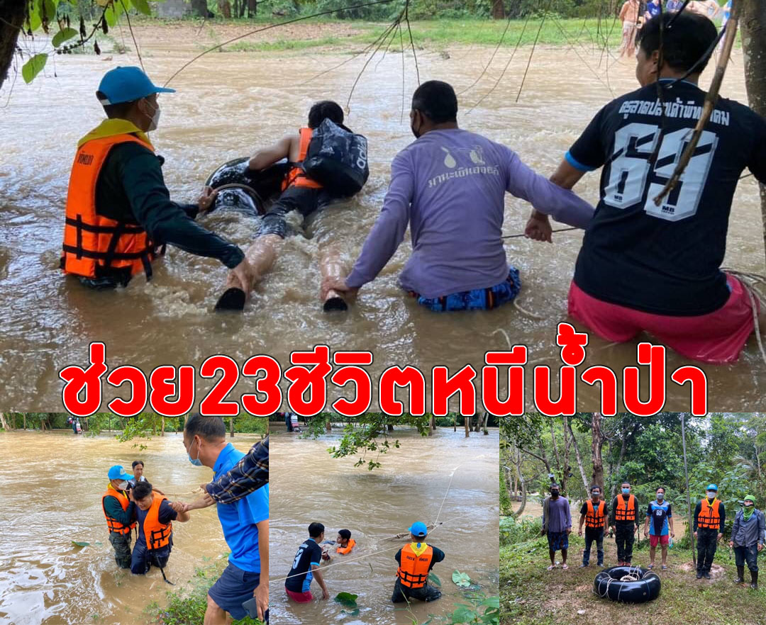 จนท.ราชบุรีสนธิกำลังฝ่าน้ำช่วย23ชีวิต นักท่องเทียวหลังถูกน้ำป่าไหลหลาก