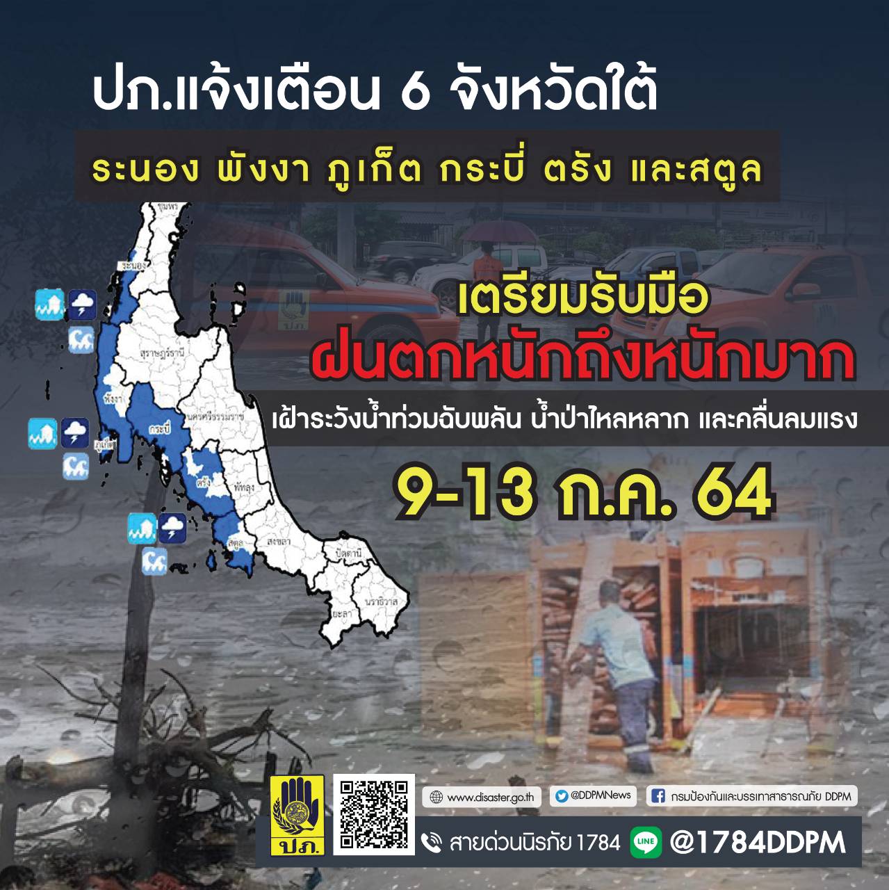 พังงา-อุตุฯเตือน 8-13 ก.ค. ประชาชนเฝ้าระวังฝนตกหนัก -น้ำป่าไหลหลาก ดินโคลนถล่ม