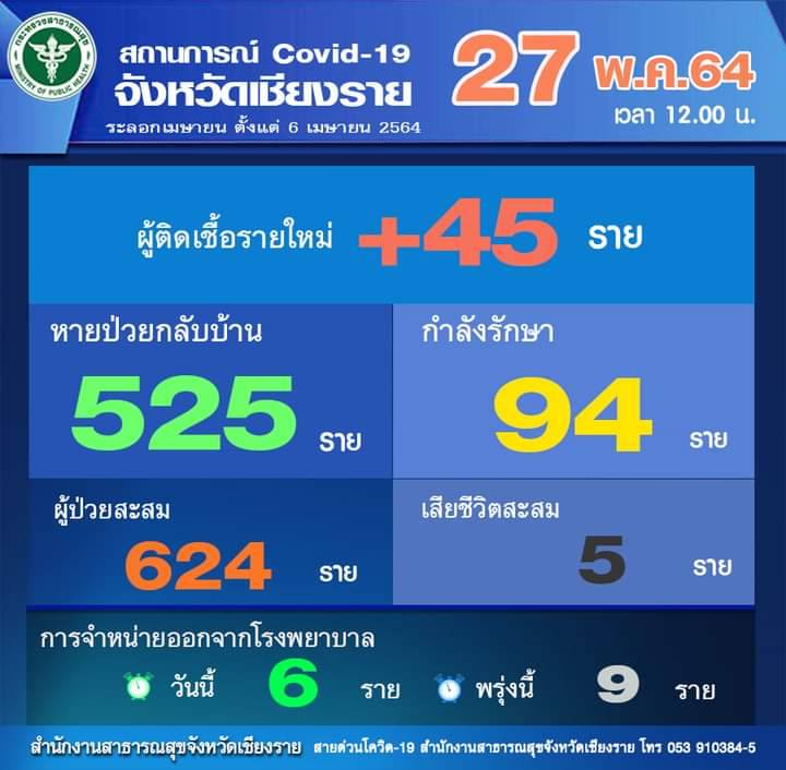 เชียงราย-จังหวัดเชียงราย พบผู้ติดเชื้อรายใหม่เพิ่มขึ้น 45 ราย แยกเป็นจาก คลัสเตอร์ โรงงานหอม อ.แม่สาย มากถึง 38 รา...