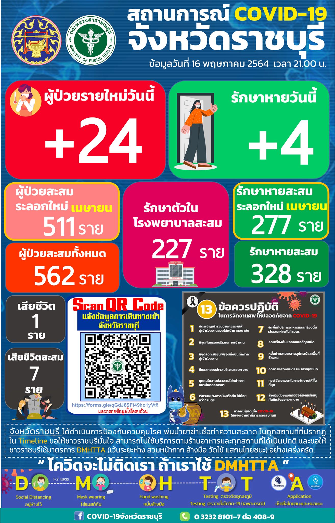 ราชบุรียังหนักผู้ติดโควิดพุ่ง24รายตาย1