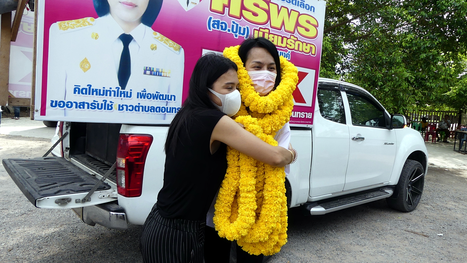 ราชบุรี-ลูกสาวครูนงค์(ศิริพร เนียมรักษา) ขึ้นรถแห่ออกขอบคุณชาวต.ดอนทราย หลังคว้าชัยนั่งเก้ากี้นายกเทศมนตรี เทศบาลต....
