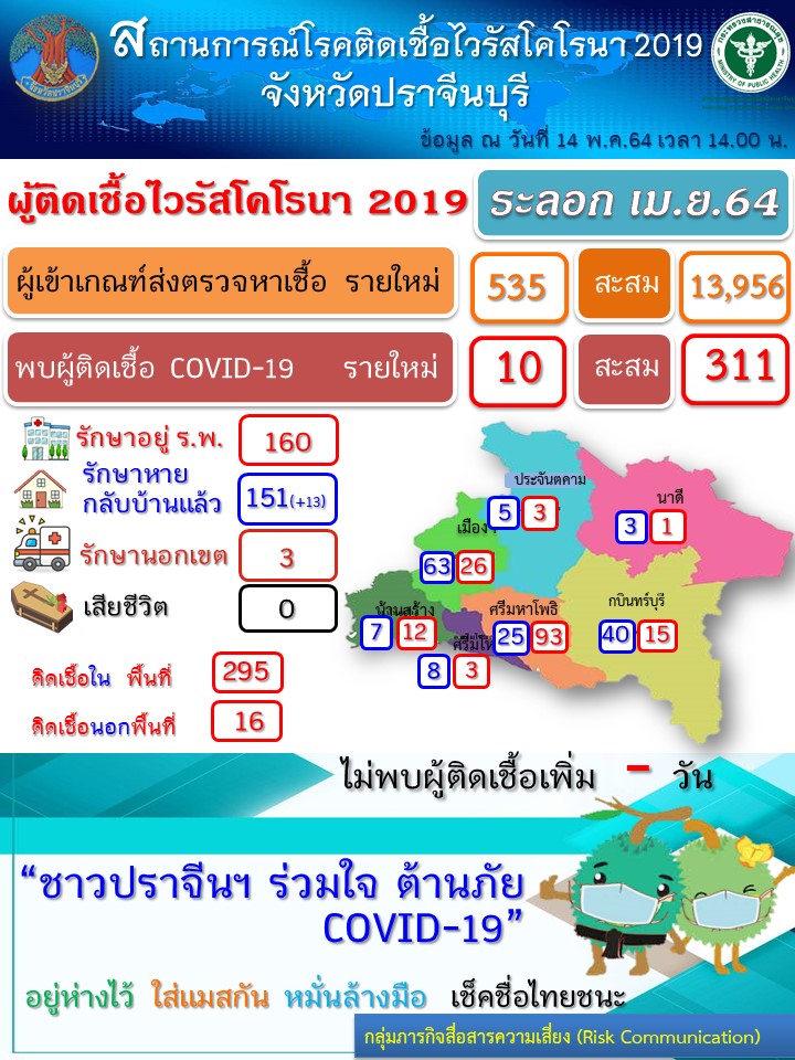 ปราจีนบุรี-โควิด-19 ยังบวกเพิ่ม วันนี้ จำนวน 10 ราย สะสมรวม 311 ราย เป็น...