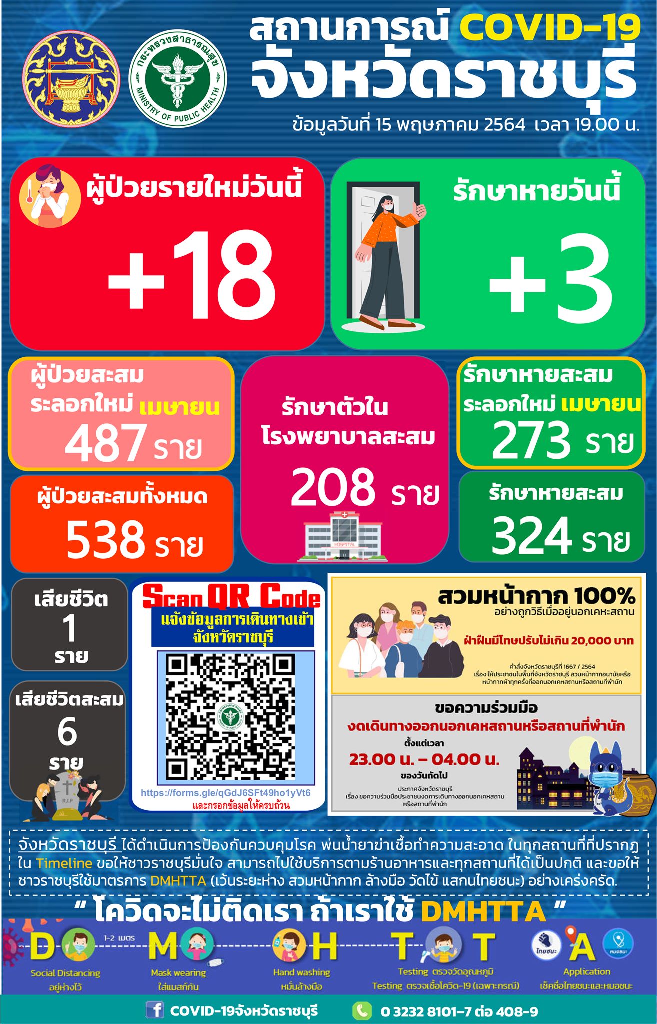 ราชบุรี - เสียชีวิตใหม่ 1 ติดเพิ่ม 18 ยอดสะสม 538 ราย ขณะเด็กชาย 2 เดือนติดด้วย