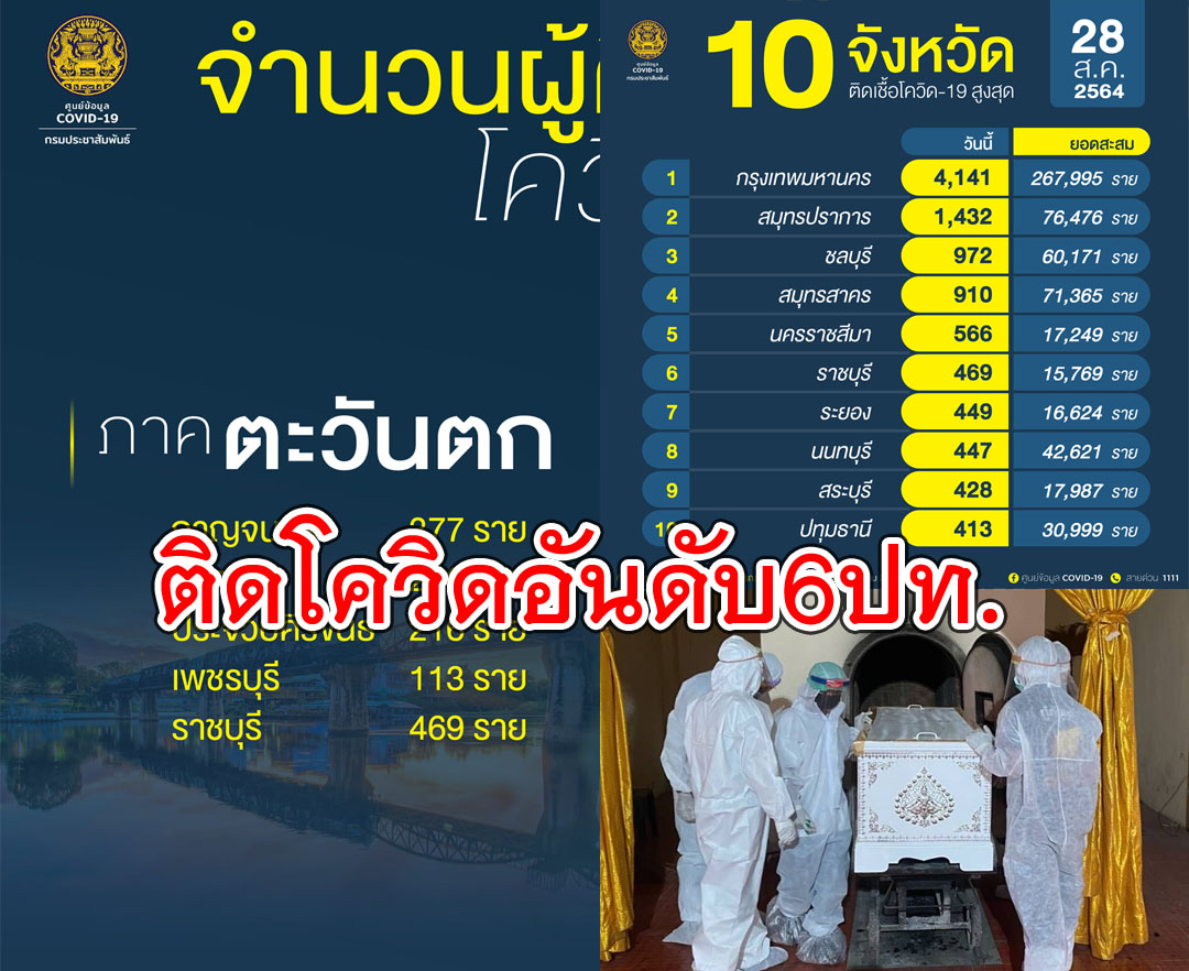 โควิดราชบุรีติดเพิ่ม469รายตายอีก3ศพ ติดอันดับ6ของประเทศ