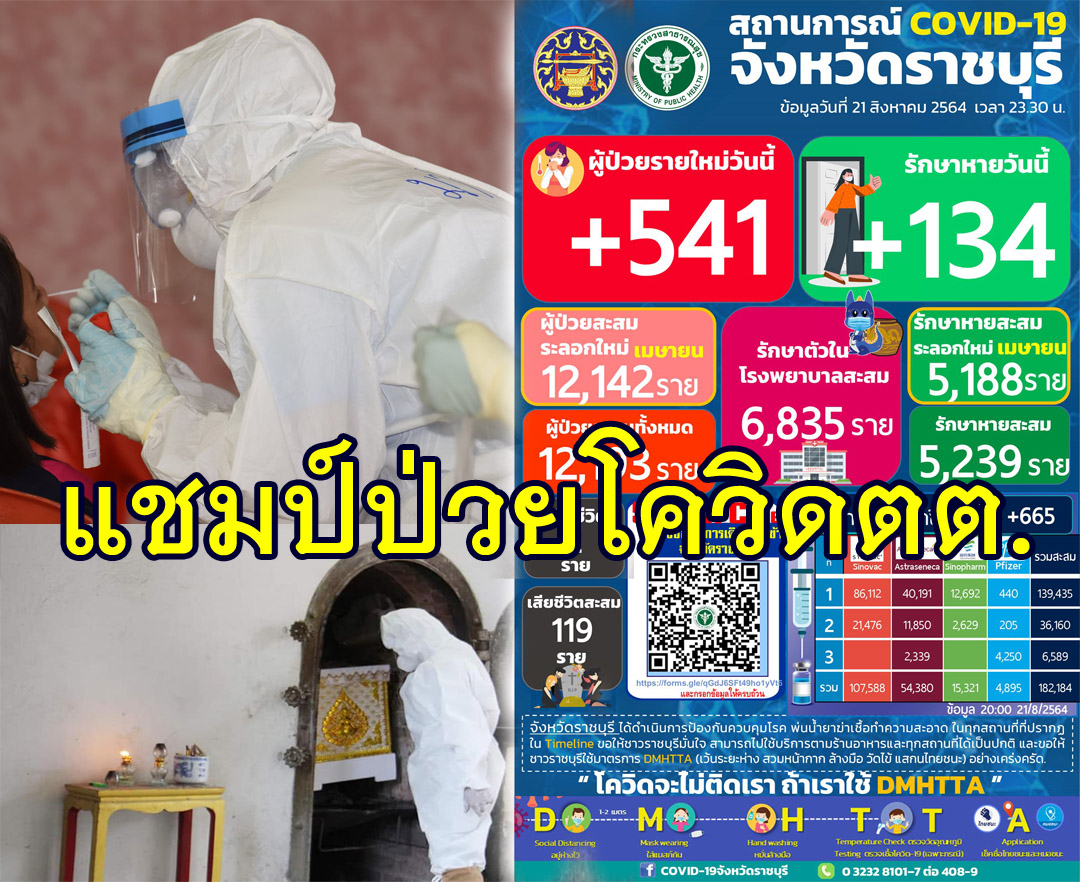 ราชบุรีเผยป่วยโควิดวันนี้541คนดับ2คน แชมป์3วันติดขึ้นอันดับ8ประเทศ