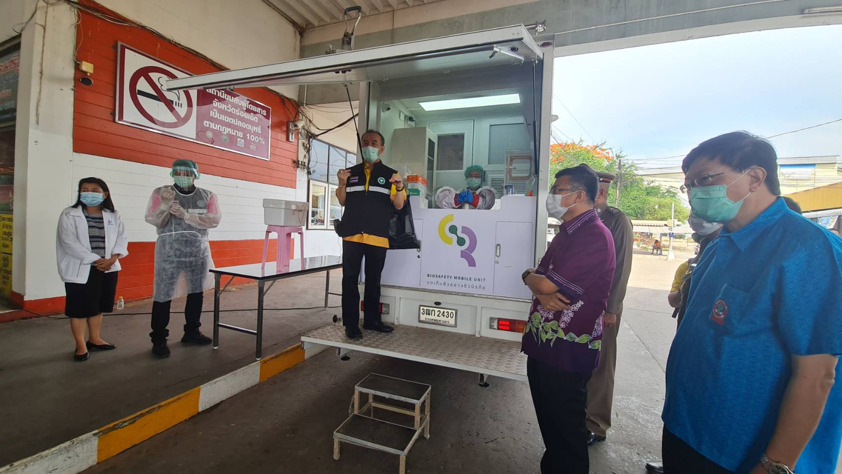 ร้อยเอ็ด-ผู้ว่าฯร้อยเอ็ด นำรถเก็บตัวอย่างชีวนิรภัย ตรวจคัดกรองหาผู้ติดเชื้อโควิด-19 เชิงรุก ณ สถานีขนส่งจังหวัดร้อยเอ็ด