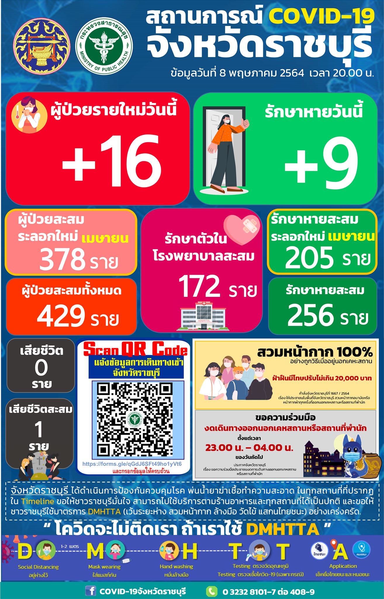 ราชบุรี-พบยอดผู้ป่วยติดเชื้อโควิด-19 รายใหม่ 16 ราย ยอดรวมติดเชื้อสะสมรวม 429 ราย เข้ารับการรักษาอยู่ในรพ. 172 ราย รักษา...
